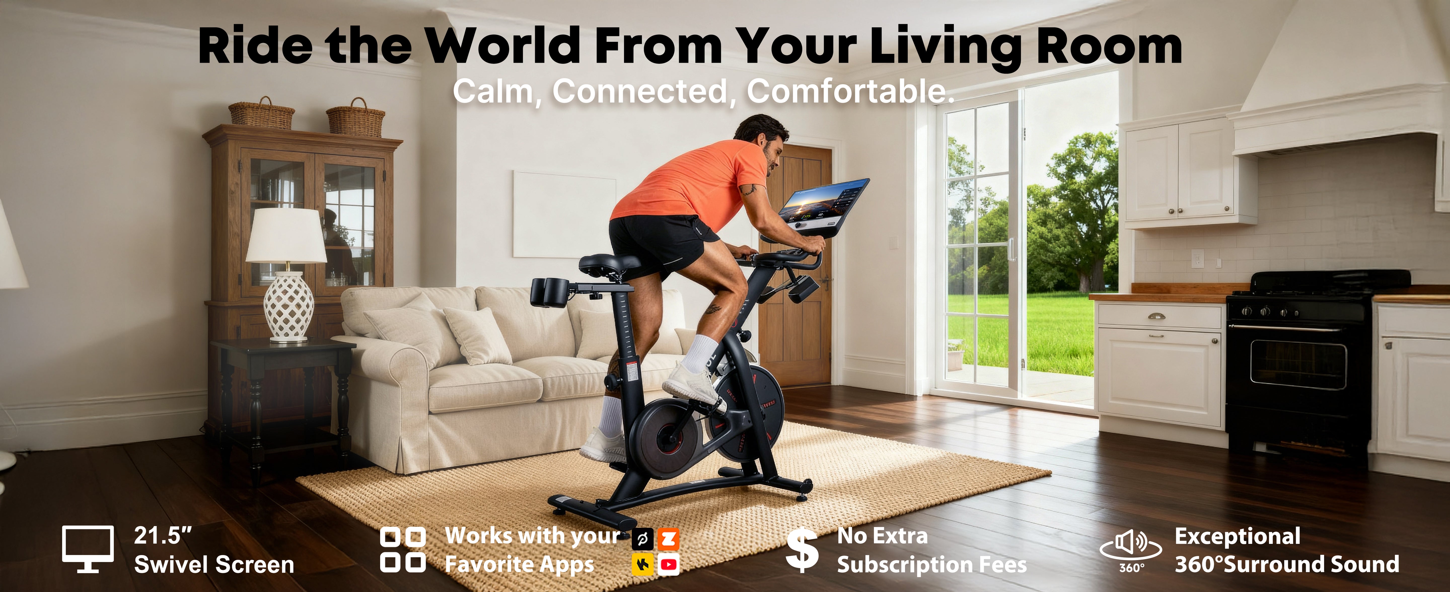 Enjoy pro-level classes with Peloton’s app — mirrored to your 21.5” HD screen. No subscription. No commitment. Just ride.