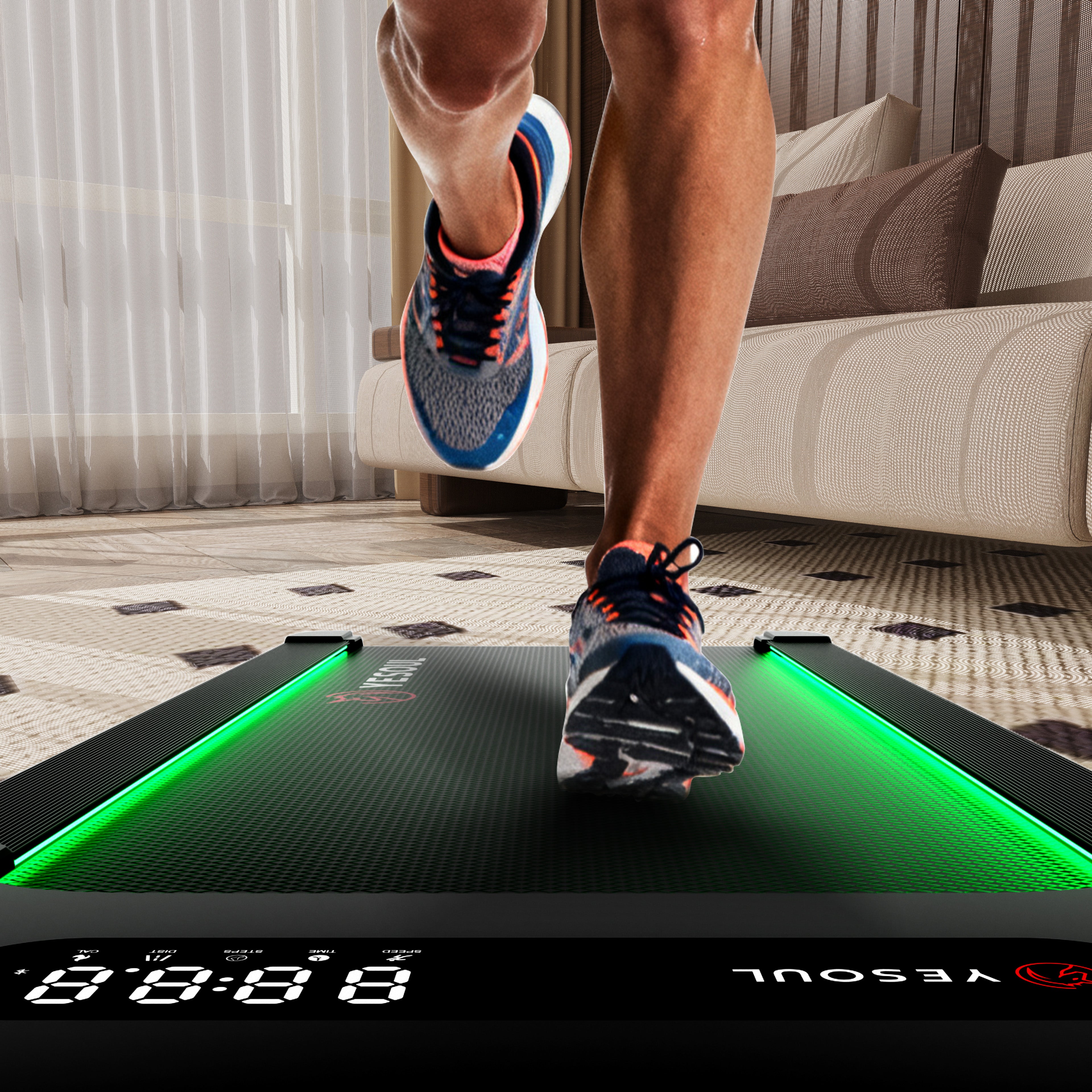 The Yesoul 6-point zero-gravity cushioning system, combined with a floating deck and 5-layer belt, provides stable support for every arch type. Run comfortably with superior knee protection.